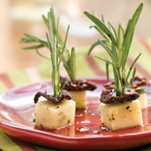 1. Cut blocks of cheese into 1-inch cubes. Arrange cheese cubes and tomato halves in an 8-inch square baking dish.